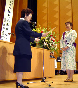 - 表彰の部では米沢商工会議所女性会が「未来に残そう桜並木」の植樹、清掃で栄誉に輝き伊藤会長さんが表彰状を受けられました。